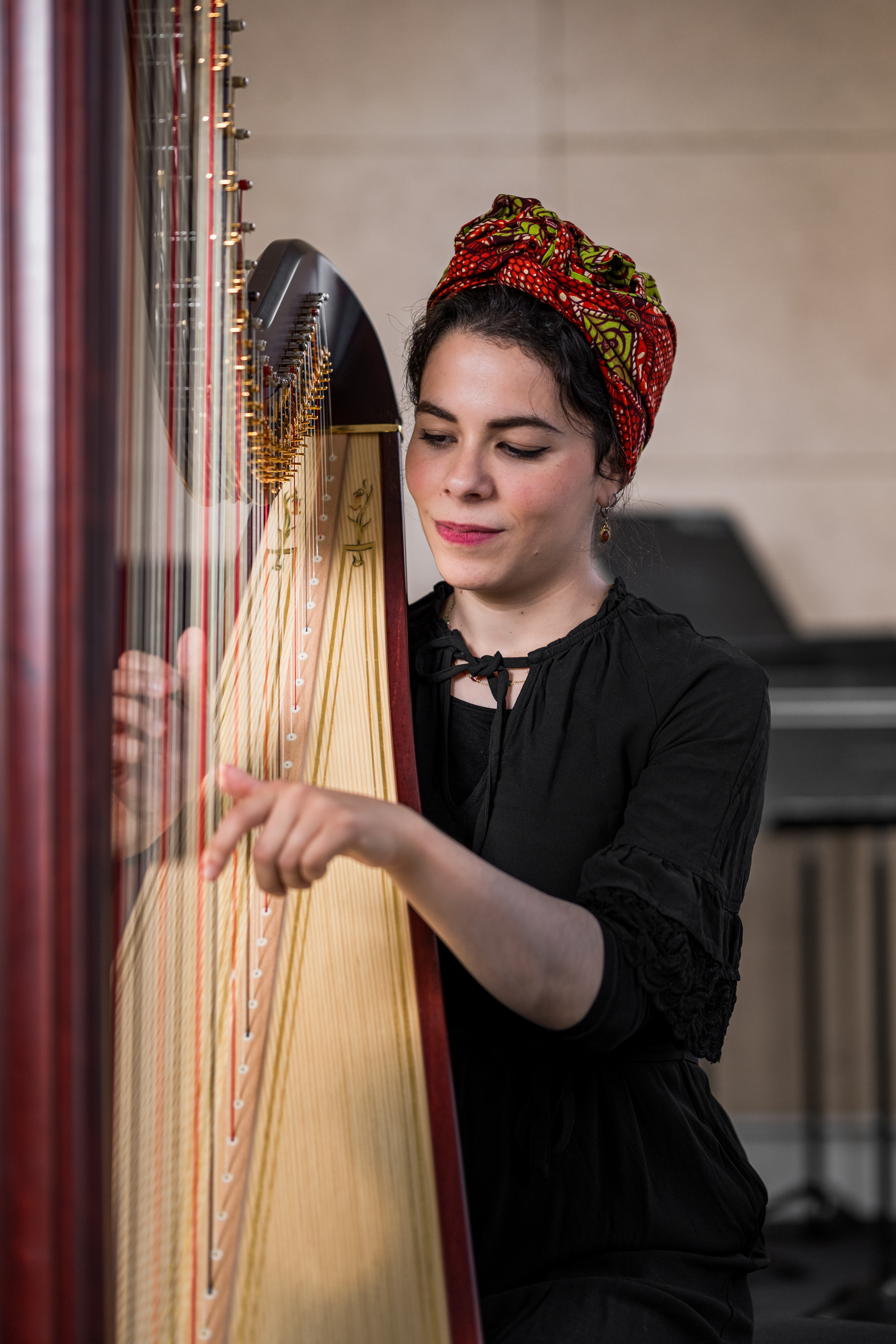 La harpe a toujours été présente dans ma vie. Mon parcours est atypique du fait de mon parcours (CAP vente, bac en candidate libre) et d’une formation de comédienne qui a profondément enrichi ma relation à la musique et ma manière de jouer de la harpe, en intégrant l'imaginaire théâtral et les enseignements que j'en ai tirés. Lauréate d’un prix de perfectionnement au conservatoire de Paris, dans la classe de Ghislaine Petit-Voltat, j’ai décidé de me diriger vers l’enseignement par amour de la transmission. Je développe une pédagogie basée sur des méthodes alternatives comme Dalcroze, j’utilise ma créativité pour trouver des solutions ludiques et je revisite la pédagogie par mes nombreuses recherches.
