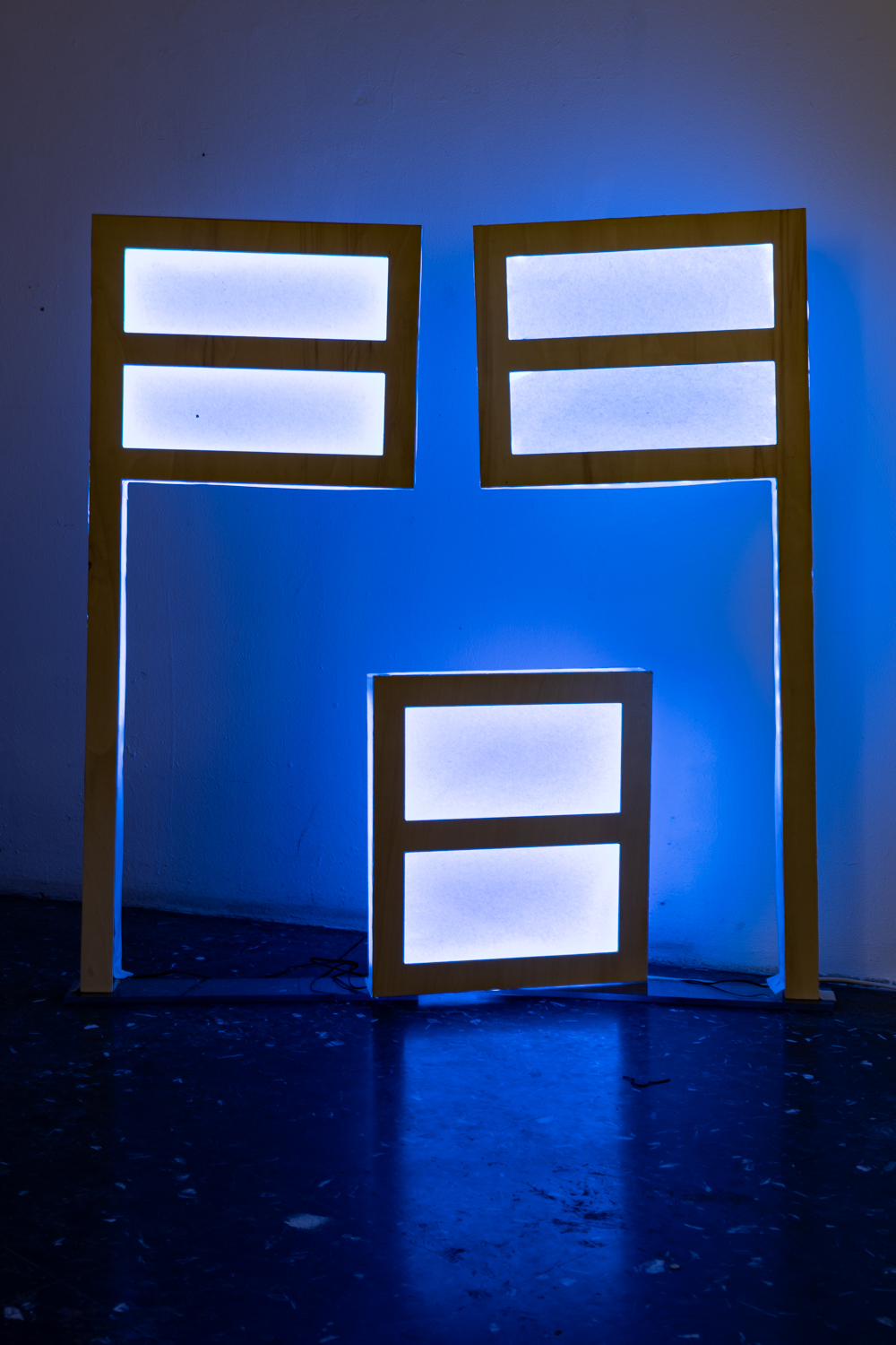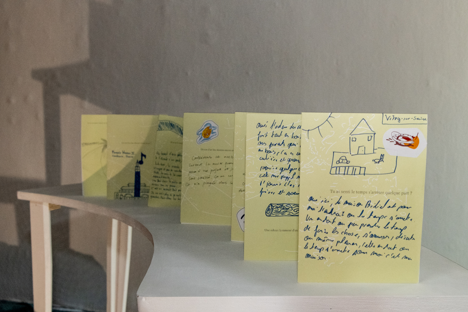 J’ai construit tout un vocabulaire plastique entre les signes « 間 » – qui désigne l’intervalle – et « 閒 » – le temps suspendu –. Pour moi, l’espace devient une matière sensible, en mouvement. Après avoir traversé différents pays et différentes villes, ces signes témoignent des interstices urbains et du flux des réminiscences qui habitent mes souvenirs. Dans mes recherches graphiques, le paysage est en mutation. La lumière, le son de la pluie et les images s’entrelacent à travers des sculptures, des poèmes, des aquarelles et des animations immersives que je propose au regard.