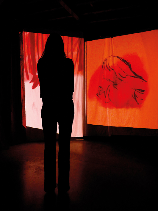 L’apaisement est sans doute ce que je recherche le plus, dans la vie comme dans mon travail. J’aime le confort d’un lit, les draps doux, la lumière tamisée. C’est cette sensation que je tente de faire exister dans mes images : une douceur qui réchauffe, qui calme, qui répare un peu. Des formes tendres, des couleurs qui rappellent l’enfance, le sucre, le ciel après la pluie. Mais j’aime aussi la part plus trouble : le bleu profond entre deux eaux, les silences qui pèsent, les contrastes entre lumière et obscurité. Mon univers est peuplé de formes organiques qui s’étirent, respirent, se transforment lentement. Elles racontent la métamorphose, les passages. Je dessine des zones floues, difficiles à dire autrement. C’est ce que je cherche dans mes images : rendre visible ce qui se garde d’habitude à l’intérieur. J’ai besoin de créer des refuges. Des espaces pour respirer, ralentir, s’extraire du tumulte. Des petits abris de papier où s’asseoir un moment.